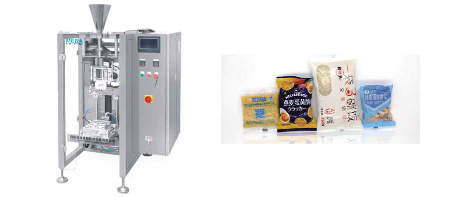 ● 本机与计量配置可自动完成计量、送料、充填制袋、日期打印、充气(排气)、成品输送的全部包装过程,并自动完成计数。 ● 采用PLC控制、气动控制系统、超大显示触摸屏构成驱动控制核心:最大限度提高整机的控制精度,可靠性和智能化程度。 ● 触摸屏能储存多种不同产品的包装工艺参数,当 更换产品时可随时使用无须重新设定。采用智能温控器,温度控制准确:保证封口美观、平整;可根据客户需要制成枕形袋。 横封伺服电机运膜,定位精确,快速平稳,摩擦小,损耗少。 ● 可以有全不锈钢机型和碳钢喷塑机型。 设有故障显示:系统出现故障,帮助及时排除故障。 ● 配备安全防护,符合企业安全管理要求。 ● 可以制作背封袋,三边封,四边封袋子等多种客户要求袋型。 | ● Machine equipped with measure parts and it can automatically complete the packaging process of measuring, feeding, bag filling date printing.air aeration (exhaust). bag conveying. and automatic bag counting. ● PLC control system, pneumatic control system and oversize touch screen to form driving control core.Maximum control precision, reliability and intelligence ofthe whole machine. ● The touch screen can store the packaging process parameters for many different products. When changing the product. it can be used without resetting. ● Adopts intelligent temperature controller and temperature control is highly accurate. Ensure that the sealing isbeautiful and smooth. ● It can select full stainless steel or carbon steel withplastic- sprayed machine structure. ● It has a error display system, which can help for troubleshoot quickly. ● It is equipped with safety protection to meet enterpr isesafety management requirements. ● It can be make back sealing bag,3-side sealing or4-side sealing bags.various sealing solution bags according to customers requirement. |